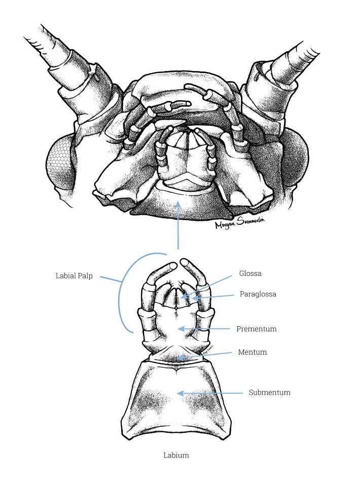 part of the mouth parts/labrum, pair of lobes used much like a tongue. Smaller, and just inside of paraglossae. See image.