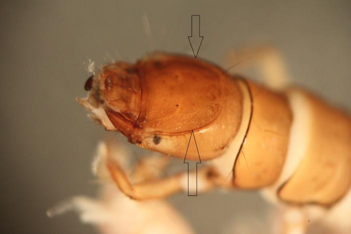where the membranous tissue bubbles up to fill the space between segments. In some caddisfly larvae this looks like a “fat roll.”
